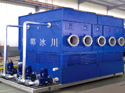 主機由殼體、換熱器、風機、噴淋系統(tǒng)、收水器、水槽及管路閥門等零部件組成。